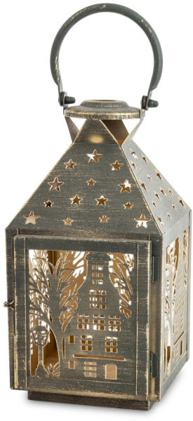 Art-Pol Óarany patinás fémkeretes mécsestartó lantern lámpás áttört fém házikó 41x16x16cm (171462)