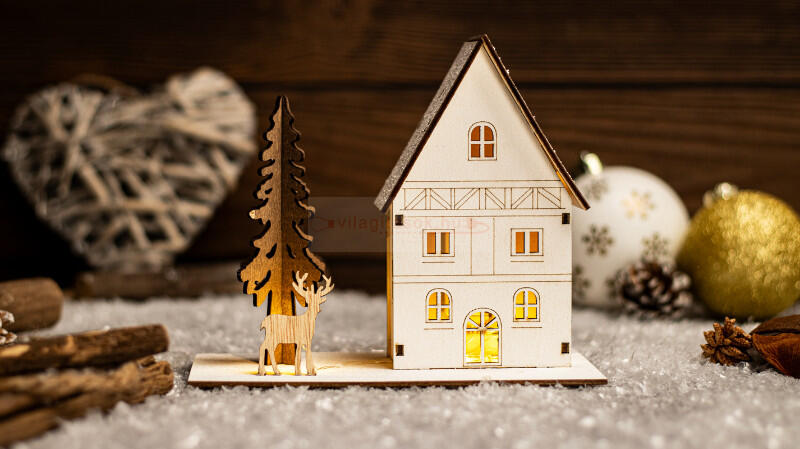 TRACON LED karácsonyi házikó, fa, elemes (CHRHR3WW)